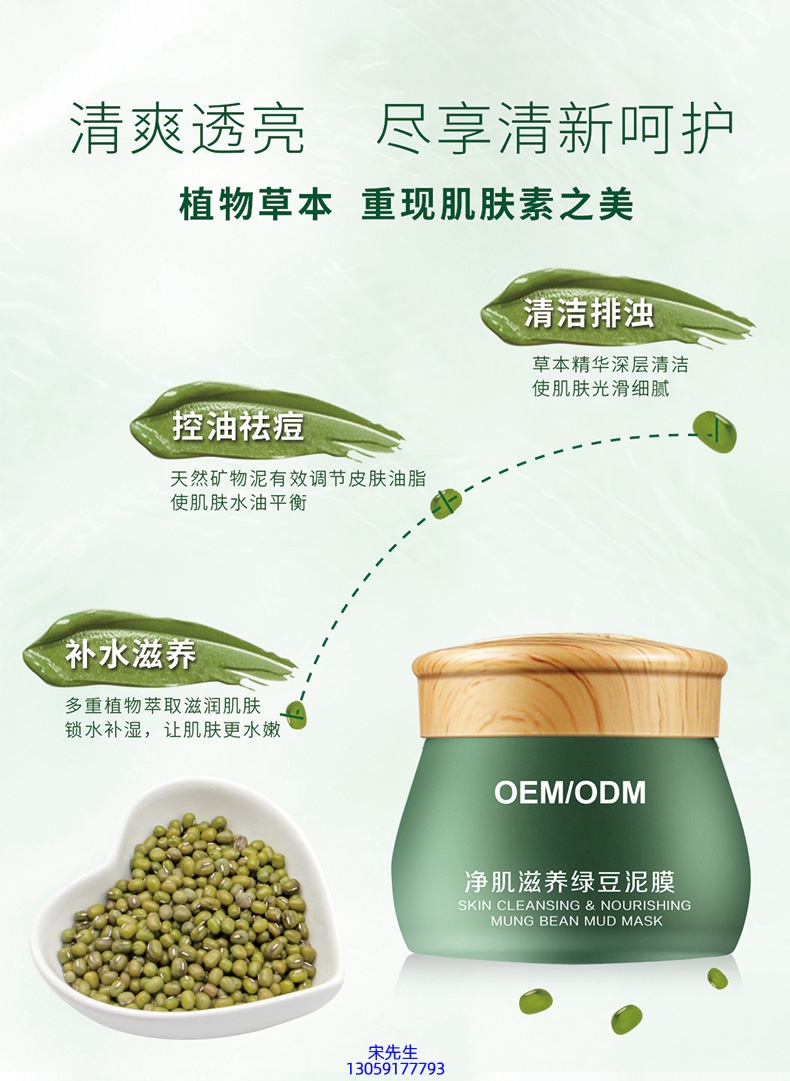长寿区_泥膜深层清洁补水保湿绿豆泥膜 泥膜oem/OEM加工贴牌